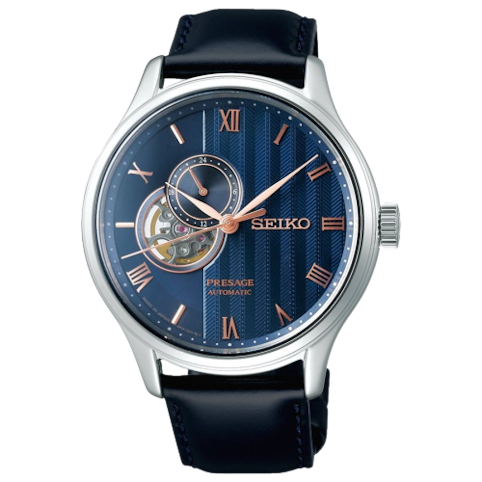 La Seiko Presage SSA421J1 est une montre automatique élégante et raffinée inspirée des jardins japonais, avec un cadran bleu profond et des détails squelettiques qui révèlent son mécanisme complexe.